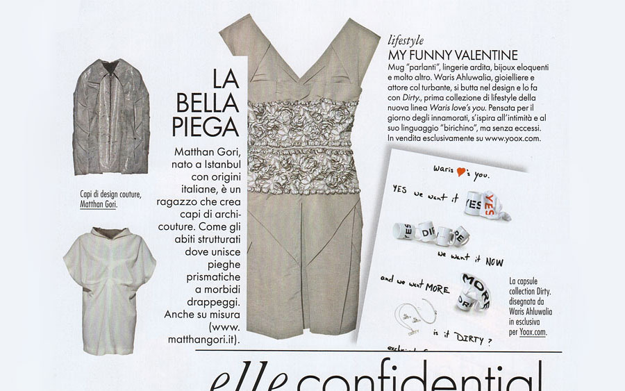 Elle Italia spoke of Maison Matthan Gori, in the edition of February 2011.